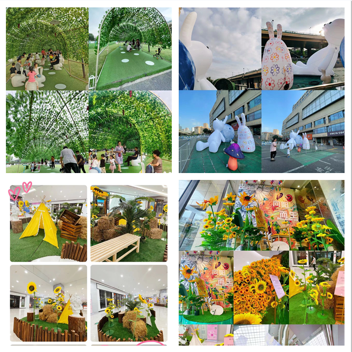 本季美陳分為室內(nèi)和室外兩大區(qū)域。室外由綠色長(zhǎng)廊和中秋氣模組成,將舒適度與節(jié)日美陳相融合,構(gòu)建出一條涼爽溫馨的風(fēng)景線。