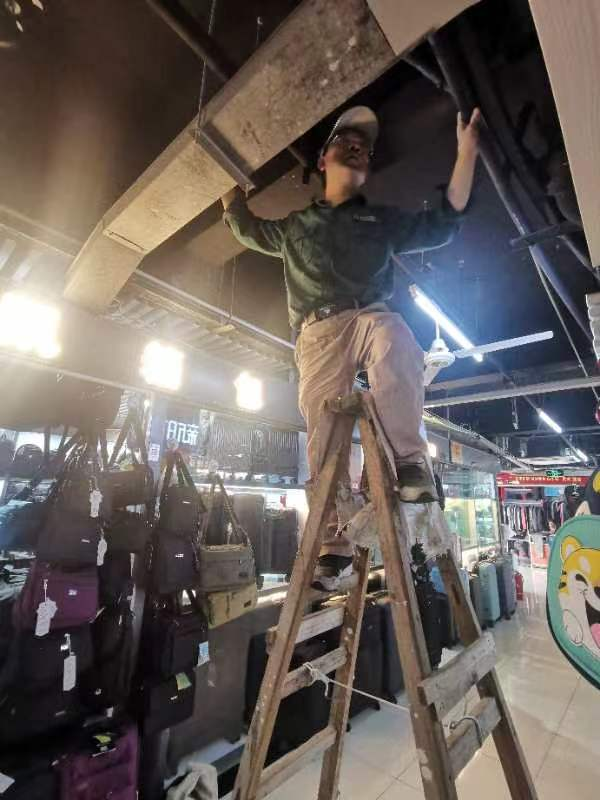 為確保 “除四害”工作的順利開展,商城請來了專業消殺公司的工作人員,對衛生死角、垃圾桶周邊、下水管道、排污口等容易滋生蟑螂、鼠類、蚊蠅的角落,進行規范、安全、高效的消殺——投放相應劑量的藥物、進行全面噴灑、置換鼠藥等,嚴格管控公共場所“四害”密度,從源頭上控制病媒生物的滋生。
