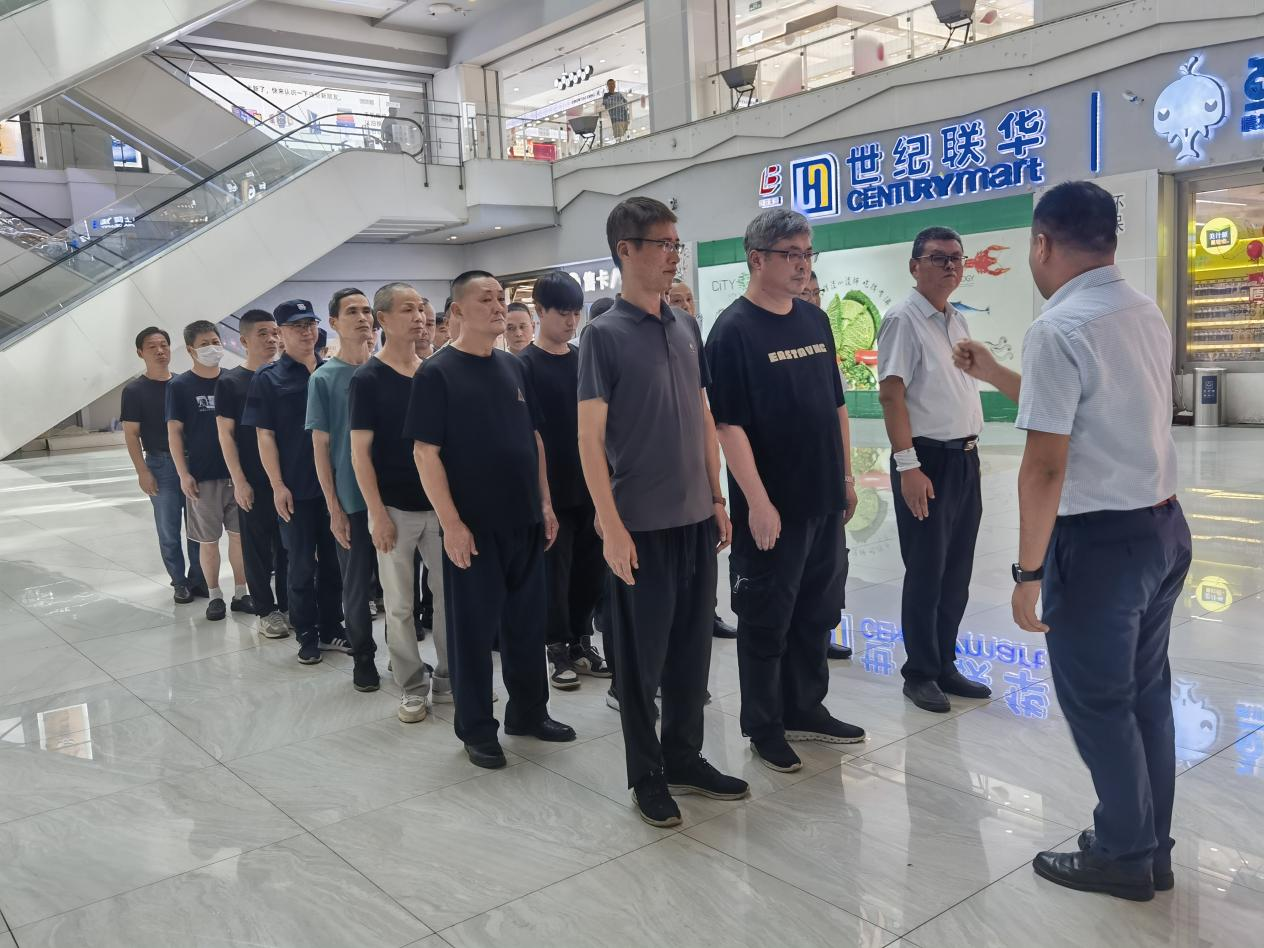 培訓以“加強安保隊伍建設,提升商城安全防護能力”為主題。主要圍繞三個方面:一是隊列訓練。安保人員再次溫習了立正、稍息、向左向右轉、齊步走、跑步等基礎內容;二是禮儀培訓,授課老師張偉就服務崗位著裝規范標準、儀容儀表規范、崗位用語規范、崗位儀態標準以及崗位服務負面行為清單等內容進行詳細講解,并從細節入手,加大對文明服務用語、站姿、坐姿、等練習 ;三是基礎消防知識講解。安保人員再次熟練掌握了初期火情處置、起火時逃生等應急技巧及滅火器、消防水帶、防毒面罩等消防器械的正確使用方法。
